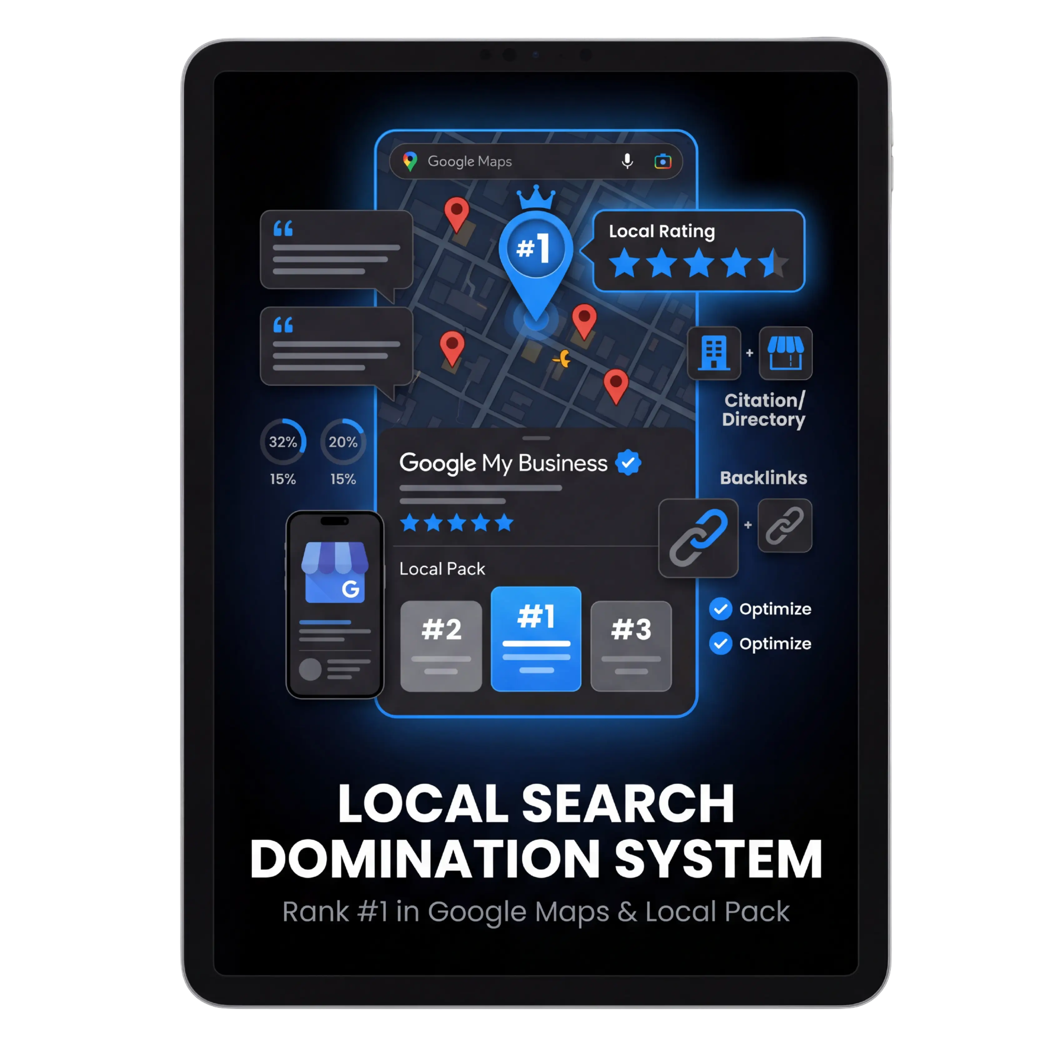 Complete blueprint to rank in Google's Local Pack and Maps — Google Business Profile strategy, review generation, citation building, and link building. Everything agencies charge $500/month to do for you.