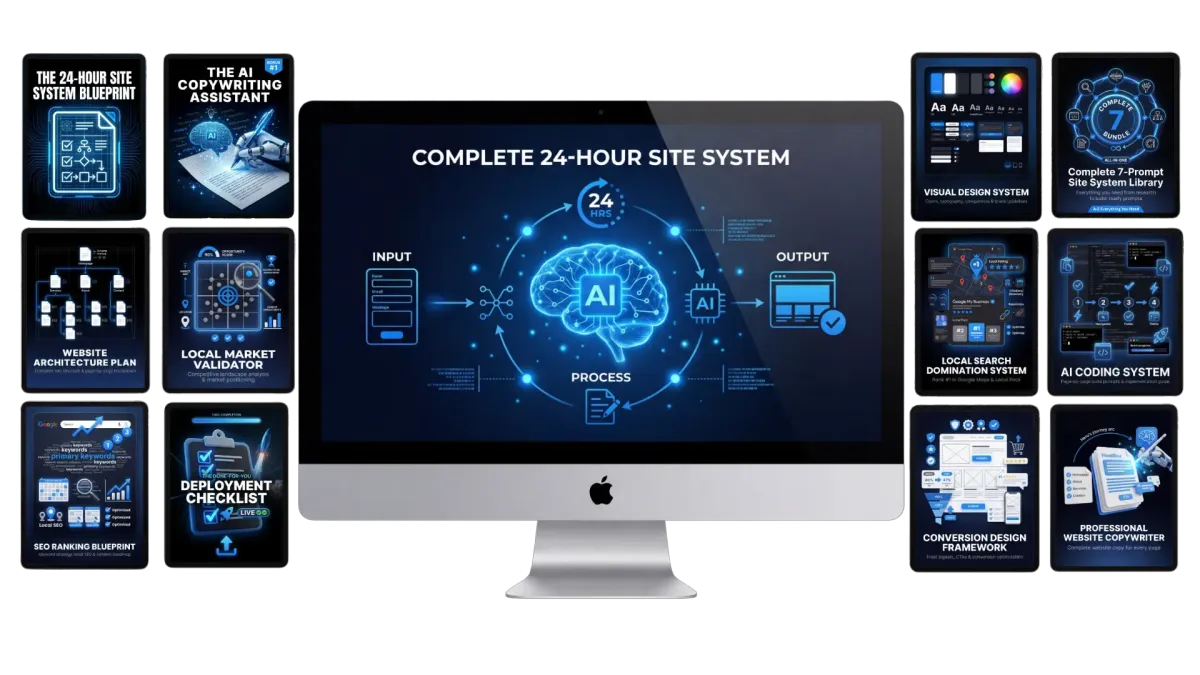 Use our 7-prompt AI system to launch a local site that ranks on Google and turns visitors into estimate requests… without hiring an agency or touching code.